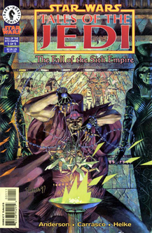 The result is Anderson’s “Golden Age of the Sith” (1996-97) and “Fall of the Sith Empire” (1997), two five-issue series that take place 5,000 years before “A New Hope.” Providing the art, as he did for Anderson’s “The Sith War,” is Dario Carrasco Jr. He does solid work, although I slightly prefer original “TOTJ” artist Christian Gossett, who will return for the final chapter, “Redemption.”