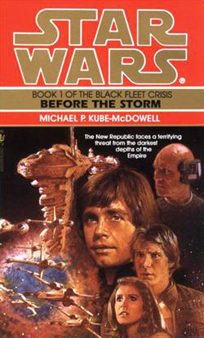 Michael P. Kube-McDowell’s “Black Fleet Crisis” paperback trilogy, which starts with 1996’s “Before the Storm,” has so many common “Star Wars” elements that it blends in with other stories. There’s a missing fleet, which calls to mind the Katana Fleet from the Thrawn trilogy; there’s a previously unknown alien foe, which calls to mind “The Truce at Bakura” and the “New Jedi Order” series; Lando explores a weird alien structure, which is reminiscent of “Lando Calrissian and the Mindharp of Sharu”; and Luke investigates his family tree, an element from “Tatooine Ghost” and the “Dark Nest” trilogy.