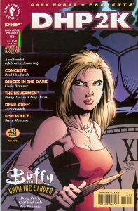 In addition to the main “Buffy” series and its miniseries and one-shots, Dark Horse put out several short tales about the Slayer in its early days with the license. The main outlet for these yarns was “Dark Horse Presents,” a monthly black-and-white comic that served as a way to advertise the company’s titles and get current fans to buy another comic – something that obviously worked on me. “DHP” delivered four comics containing “Buffy” stories from 1998-2000; here’s a closer look: