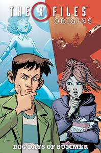 It’s become fashionable in the last decade or so to try to draw new fans into old franchises. Toward that end, you might as well start them young: Hence, we have “X-Files: Origins” (2016), a four-issue young-adult series in which each issue is a flip-comic – half is Mulder’s story, half is Scully’s. So it’s two issues’ worth of story for each teenage future-agent. The series was popular enough to warrant a sequel in the same format, 2017’s “Dog Days of Summer.”