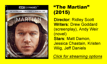 As Goddard, Scott and the actors add humanity to “The Martian,” they don’t sacrifice adherence to science and math – at least not in any way I noticed. Maybe some pickier viewers will notice things, but I’m pretty picky myself, having been jarred out of otherwise strong SF films like “Interstellar” and “Ad Astra” by the scientific cheats.
