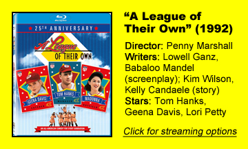 “A League of Their Own” (1992), based in spirit if not specifics on the All-American Girls Professional Baseball League of the 1940s, is easy to pick apart once you give it some thought. But director Penny Marshall keeps the broad humor and luscious period detail coming at enough of a clip that the flaws don’t hurt it.