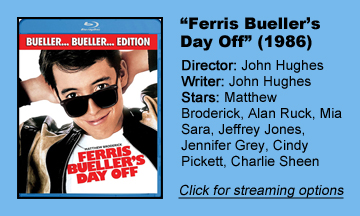 “Ferris Bueller’s Day Off” (1986) – the fourth directorial effort from writer John Hughes – has two great messages that almost no one subscribes to in their daily lives: 1, stand up for yourself if you want to control your life, and 2, public school is horrible and should not continue to exist.