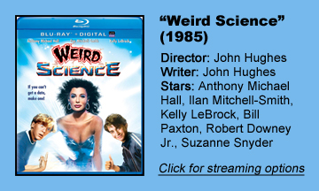 Many moments in “Weird Science” (1985) – the third directorial effort from writer John Hughes – make me think “This movie couldn’t be made today.” Geeks Gary (Anthony Michael Hall) and Wyatt (Ilan Mitchell-Smith) build a girl for the purpose of having sex with her (albeit vaguely), and Lisa (Kelly LeBrock) regularly speaks of how they own her.