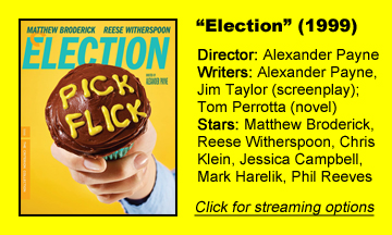 Don’t be hesitant to watch “Election” out of fears it chronicles poisoned partisan politics; there’s none of that. It’s a broader, funnier portrayal of the modern election process. Unlike most fictional high school elections, no one promises more vending machines. Tammy’s off-the-cuff speech offers the only promises.