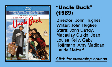 “Uncle Buck” is predictable overall, needing more Metcalfian edge to stand out. It’s easy to watch Candy do his thing, and this is heartfelt family viewing even considering the hesitant intimations of violence and rape. Don’t get me wrong; “Uncle Buck” has broad appeal.