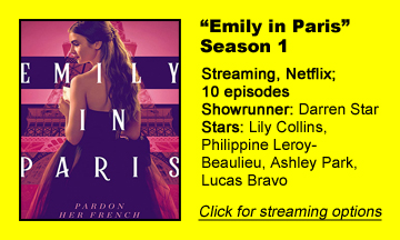 Not all October premieres have to be scary – although a lot of them are (see later in this post) – so let’s start off this look at first episodes of new streaming shows with “Emily in Paris” (Netflix). Well, I shouldn’t say it’s not at all scary.