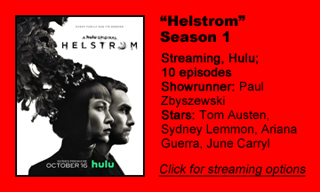 The offspring of a serial killer father and a possessed mother, estranged brother and sister Daimon (Tom Austen) and Ana (Sydney Lemmon) Helstrom both hunt demons – Daimon (barely) within church purview, Ana on her own.