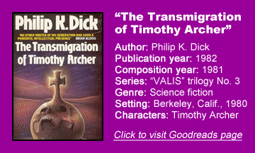 And with “The Transmigration of Timothy Archer” (written in 1981, published in 1982), PKD goes out on top with yet another professionally crafted, never-silly novel. Although he couldn’t have known this would be the last novel before his untimely death at age 53, it’s remarkable how crisply this is written as it puts a bow on the spiritual concepts important to the author at this time.