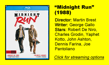 And it’s consistently hilarious. Written by George Gallo (“Bad Boys”) and directed by Martin Brest (“Beverly Hills Cop”), “Midnight Run” is packed with great dialog without trying too hard with set-ups or set pieces.