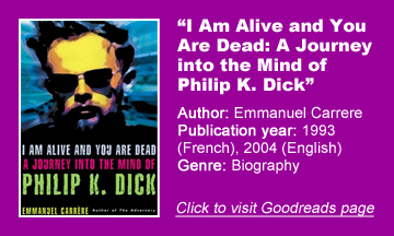 French Philip K. Dick mega-fan and novelist Emmanuel Carrere takes one of the most unusual approaches to a biography in “I Am Alive and You Are Dead: A Journey into the Mind of Philip K. Dick” (1993, with the English translation published in 2004).