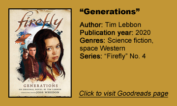 “Generations” gets mileage out of neat little moments rather than big answers. Mal discovers ground vehicles that all have the same name: “Ford.” Jayne finds athletic shoes and Simon a medical textbook. The author tiptoes into territory explored by Asimov’s “Foundation” series, which – like “Firefly” – is also about humanity in a time when knowledge of Earth has faded.