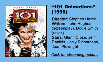 Hughes returns to a canine-centric yarn in the 1996 remake of “101 Dalmatians,” which is based on a book but best known by the 1961 animated version.