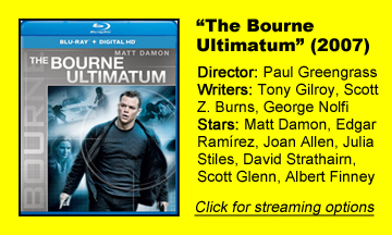 “Supremacy” gives us a lot of quick flashes of Bourne’s assassin life without much payoff, but “Ultimatum” has more urgency as the end of a trilogy. (There will be two more “Bourne” films after this, and there are plenty more novels. But this is the capper to Bourne’s emotional arc about confronting his past.)