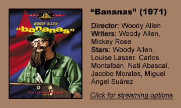 To give an example of how “Bananas” is smart yet unfocused, one of the lines I found funniest is when a U.S. interventionist soldier asks his commander whether they are fighting for or against the government of San Marcos. “The CIA’s not taking any chances this time,” the commander replies. “Some of us are for, some of us are against.”