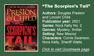 Corrie Swanson and Nora Kelly, our two favorite women from the Preston-Childverse (with apologies to Constance Greene) return for their second combined adventure, “The Scorpion’s Tail” (January, hardcover). As was first seen in 2019’s “Old Bones,” young FBI agent-in-training Corrie and experienced archaeologist Nora play off each other in entertaining ways.