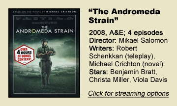 “The Andromeda Strain” is a classic example of an old film that’s worthy of a remake: It has name recognition but could use some modernization. Interestingly, the miniseries version of “The Andromeda Strain” (2008) – which came out six months before Crichton’s death – is not a tight thriller but rather an expanded version. The four-episode A&E miniseries runs a total of 3 hours.