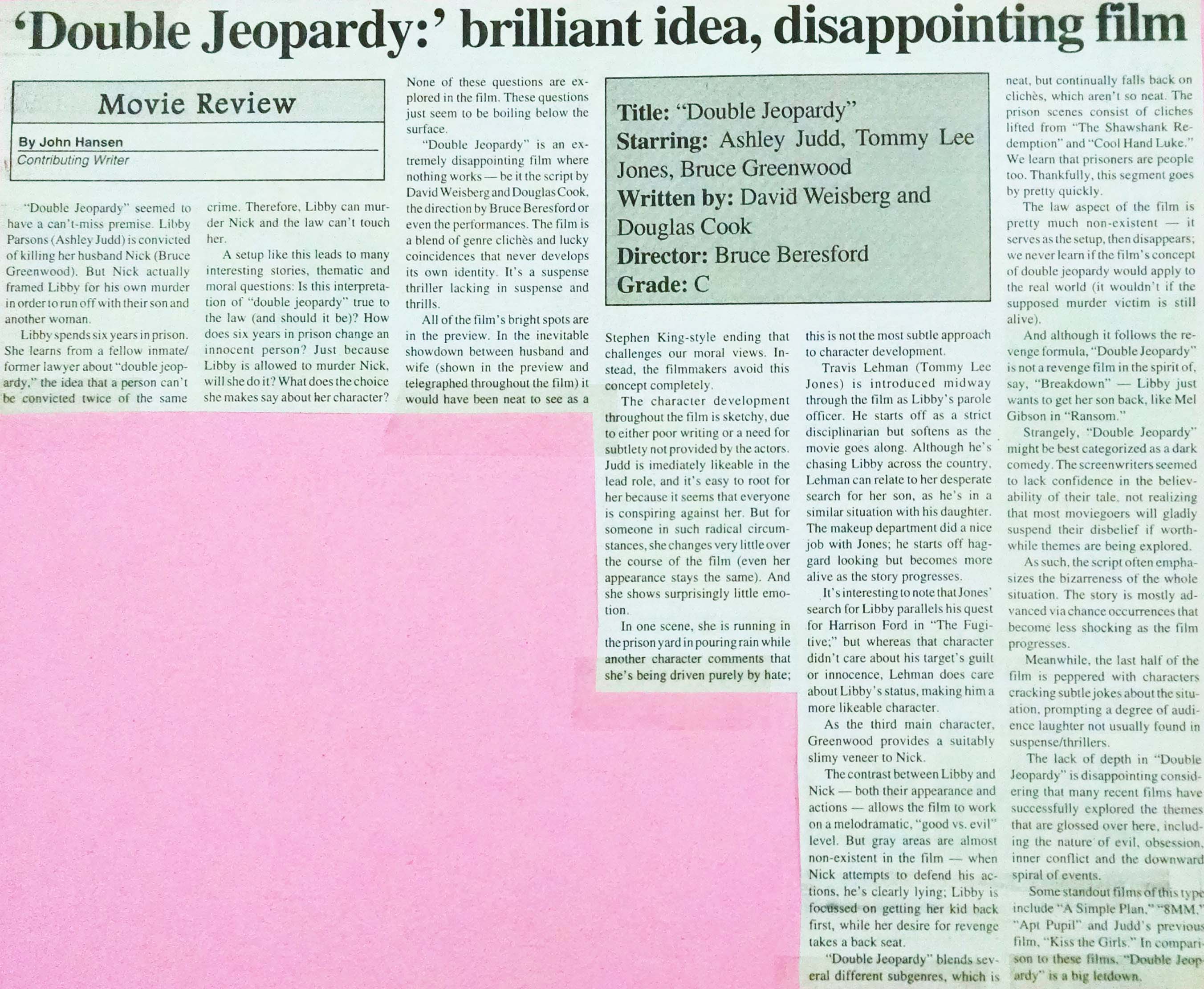 My “Double Jeopardy” review, NDSU Spectrum, September 1999